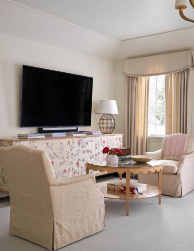 The formal living room is a refined showpiece, anchored by exquisite hand-painted wallpaper that adds depth and elegance. Tall ceilings, rich natural light, and sophisticated finishes create a space that’s both timeless and inviting—perfect for elevated entertaining or quiet moments of luxury.