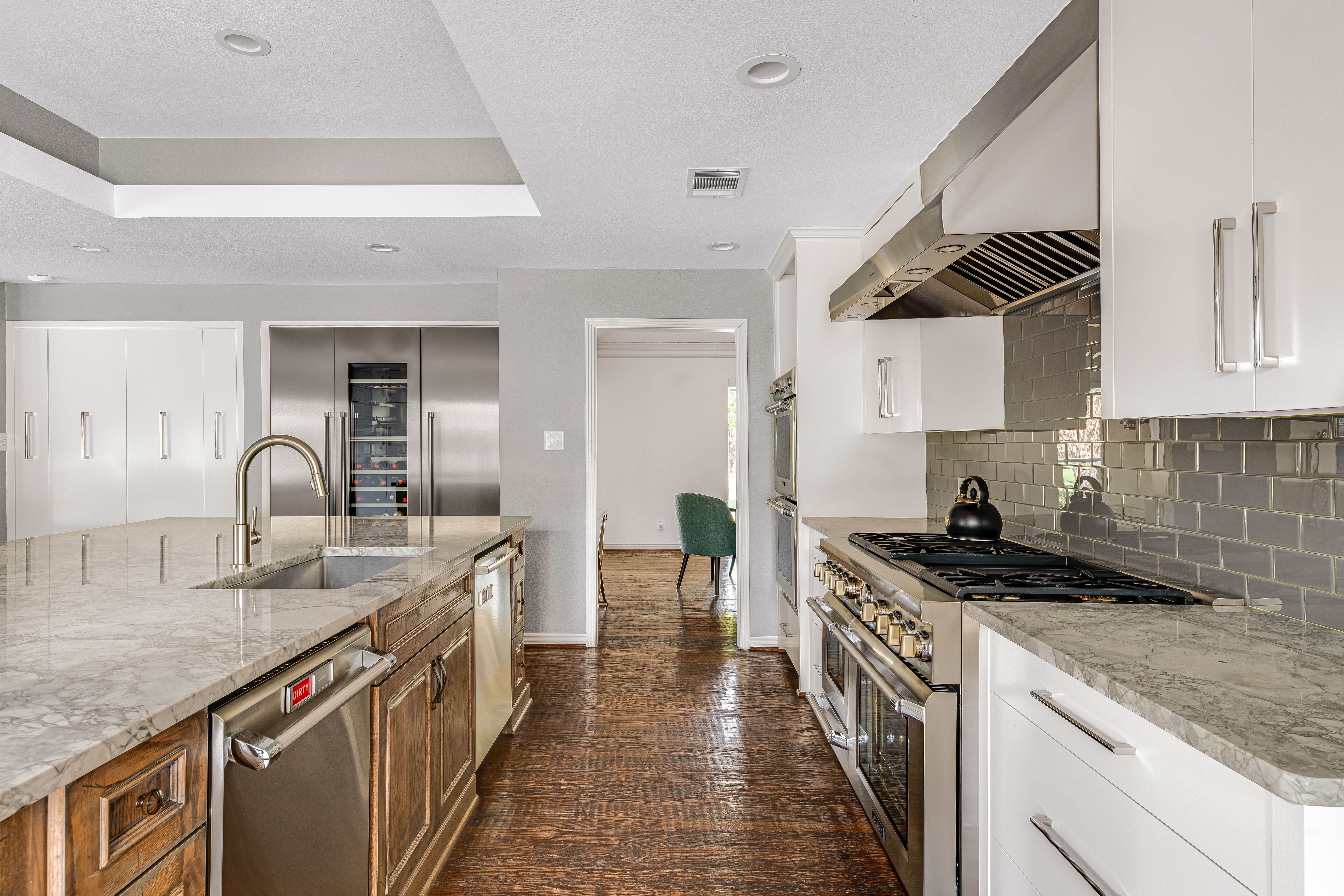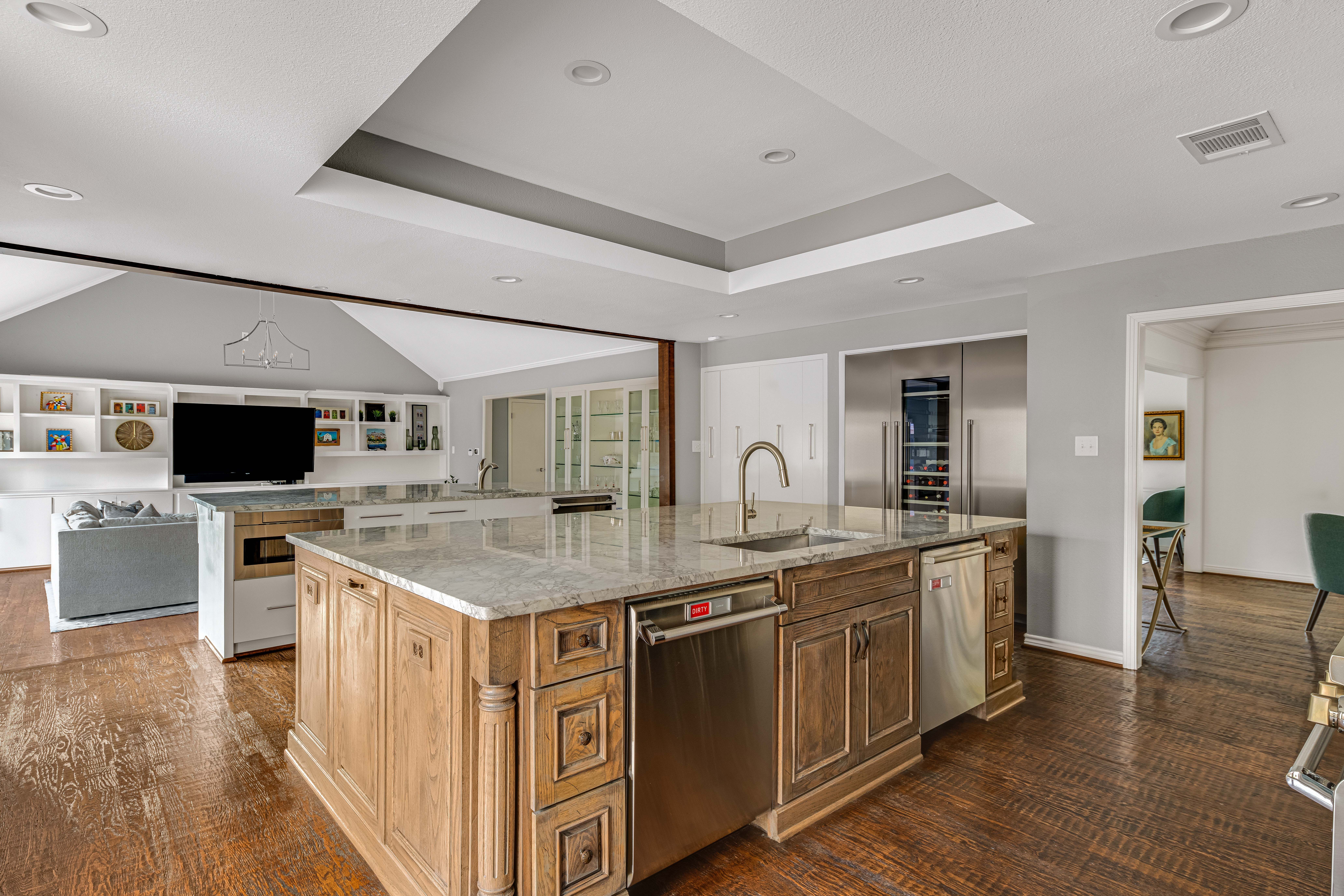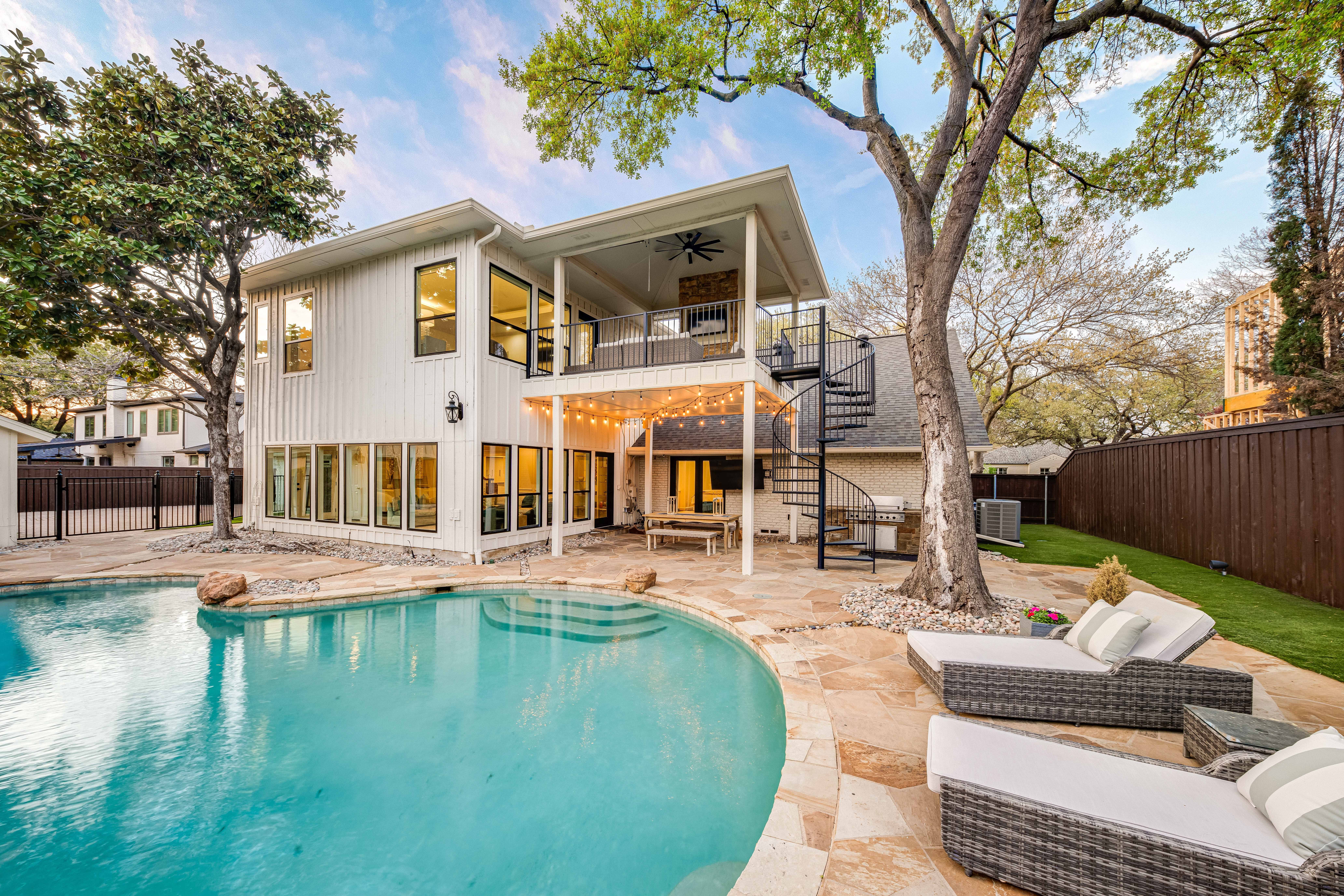 Situated in the sought-after Private School Corridor, this beautifully updated home offers over 5,200 square feet of thoughtfully designed living space. With four generous living areas, it’s ideal for both everyday family life and effortless entertaining. The gourmet commercial kitchen is a chef’s dream, featuring 2 islands, two dishwashers, three ovens, and a steam oven for ultimate convenience. The floor plan includes four bedrooms plus a fifth currently used as a study, including two primary suites—one offering exceptional privacy, perfect for multigenerational living or a luxurious guest retreat. Updates include new HVAC systems, tankless water heaters, windows, doors, a 2019 roof, and whole-home surround sound. Outside, the backyard is designed for year-round enjoyment, boasting a resurfaced pool with all-new equipment and app control, a turf lawn, an updated deck, a fully remodeled cabana, and an enhanced mosquito repellant system. A three-car garage and gated drive complete this turnkey property in one of Dallas' most established neighborhoods.