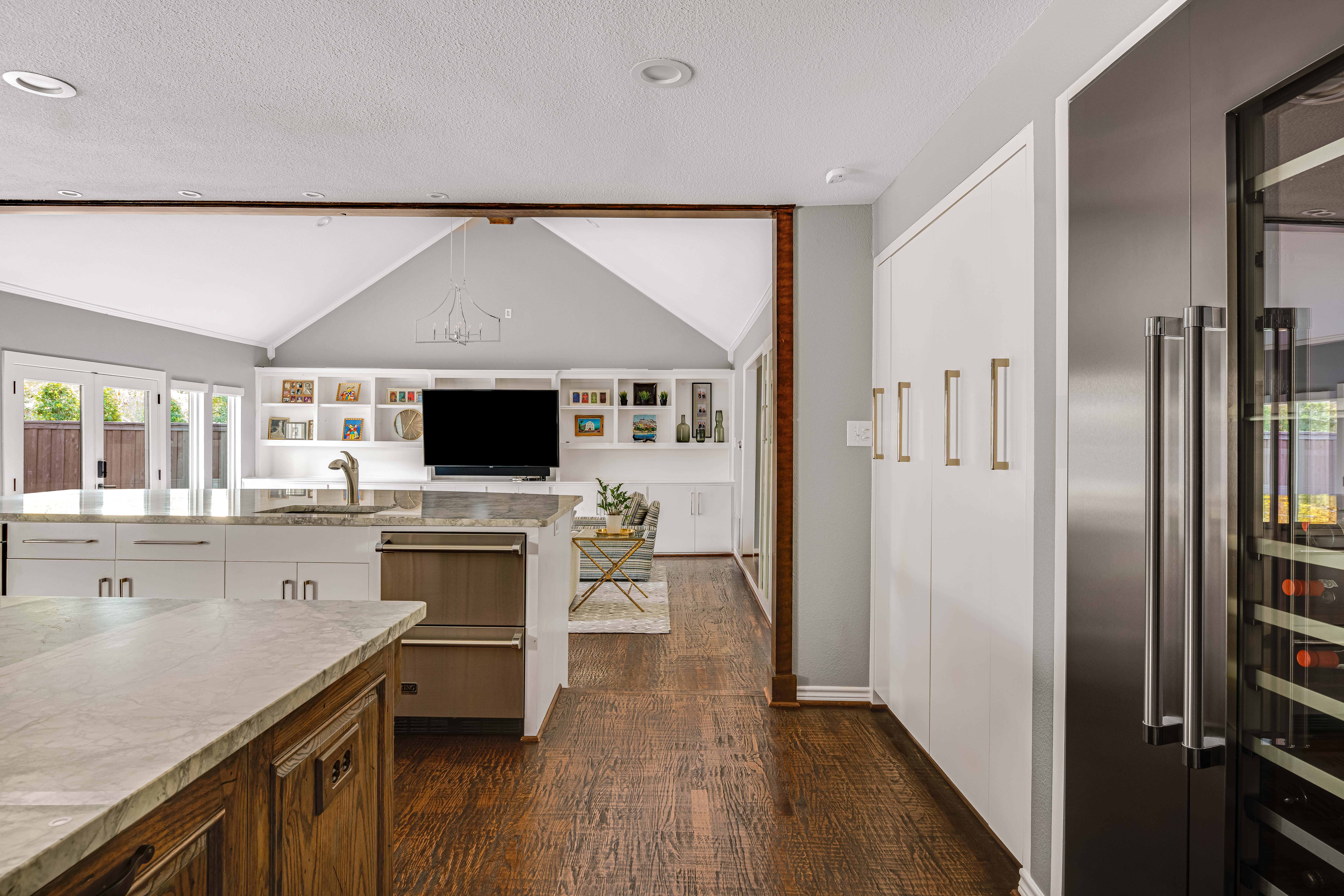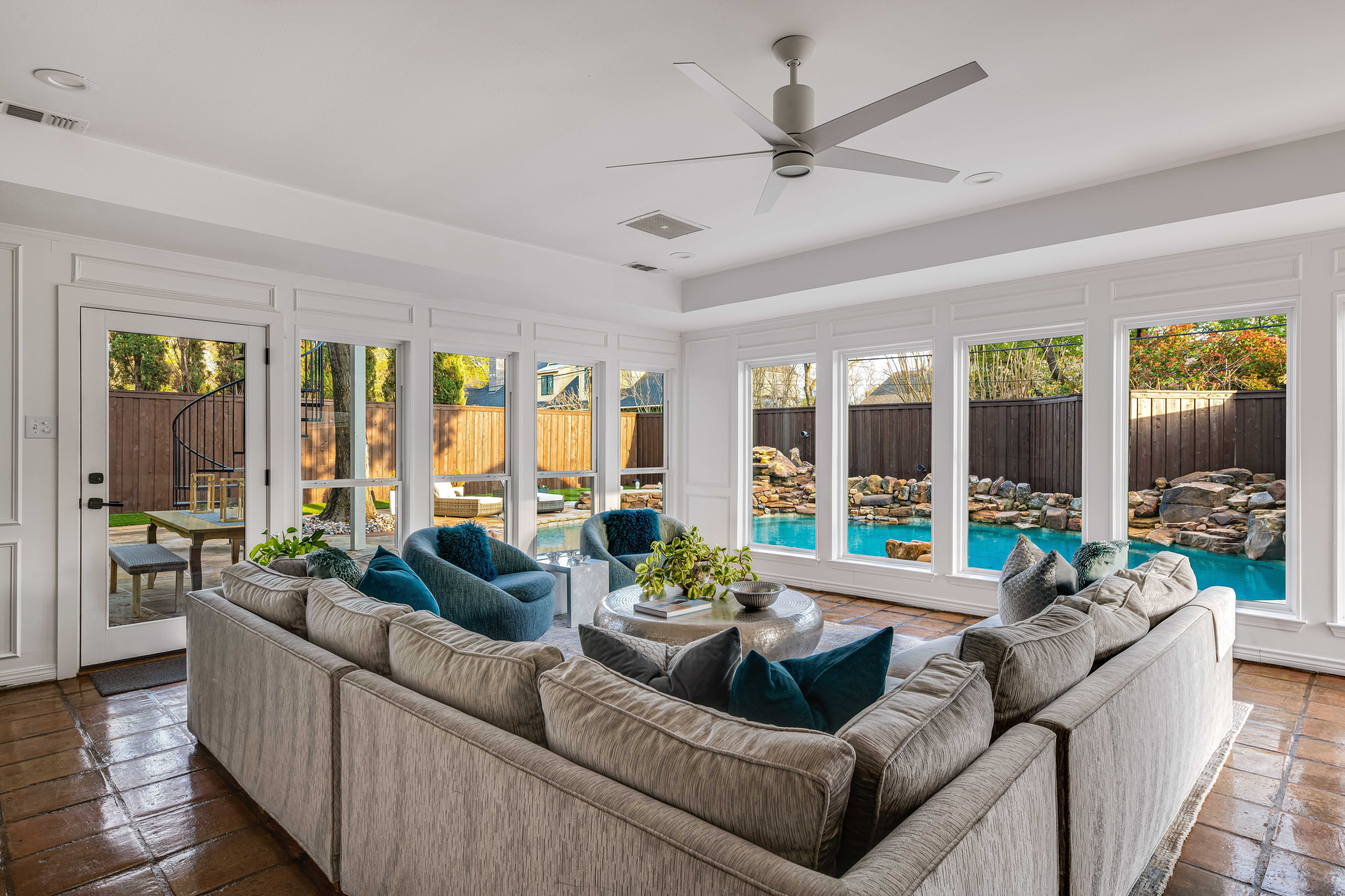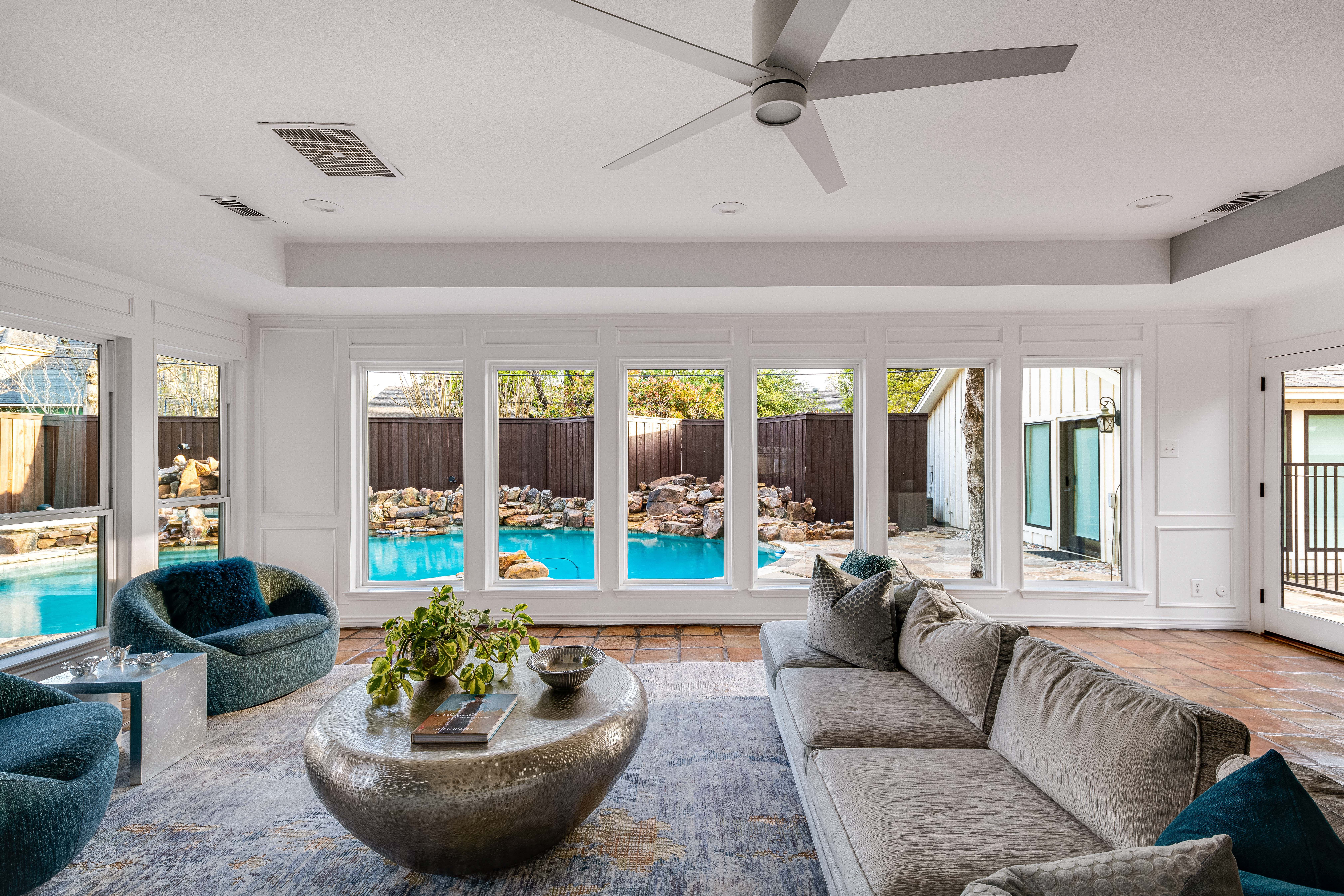Situated in the sought-after Private School Corridor, this beautifully updated home offers over 5,200 square feet of thoughtfully designed living space. With four generous living areas, it’s ideal for both everyday family life and effortless entertaining. The gourmet commercial kitchen is a chef’s dream, featuring 2 islands, two dishwashers, three ovens, and a steam oven for ultimate convenience. The floor plan includes four bedrooms plus a fifth currently used as a study, including two primary suites—one offering exceptional privacy, perfect for multigenerational living or a luxurious guest retreat. Updates include new HVAC systems, tankless water heaters, windows, doors, a 2019 roof, and whole-home surround sound. Outside, the backyard is designed for year-round enjoyment, boasting a resurfaced pool with all-new equipment and app control, a turf lawn, an updated deck, a fully remodeled cabana, and an enhanced mosquito repellant system. A three-car garage and gated drive complete this turnkey property in one of Dallas' most established neighborhoods.